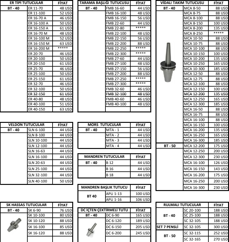 THİNEX YEDEK PARÇA FİYAT LİSTESİ